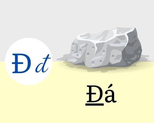 ອັກສອນຕົວນີ້ອ່ານວ່າ: Đ[ເດີ່] ຖ້າທຽບກັບຕົວອັກສອນໃນພາສາລາວແມ່ນຈະຄືກັບຕົວ ດ. ຢູ່ໃນນີ້ຈະອ່ານ ແລະອອກສຽງທັງໝົດວ່າ: Đ-đá[ເດີ່-ດາ]. Đá[ດາ] ມີຄວາມໝາຍວ່າ: ”ຫີນ”. ຕົວອັກສອນ Đ[ເດີ່] ນີ້ຈະເປັນໄດ້ແຕ່ພະຍັນຊະນະຢ່າງດຽວ.
