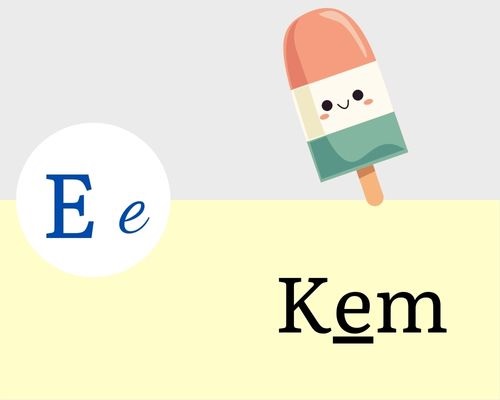 ອັກສອນຕົວນີ້ອ່ານວ່າ: E[ແອ] ເປັນສະຫຼະ E[ແອ] ໃນພາສາຫວຽດ, ຖ້າທຽບໃສ່ພາສາລາວແມ່ນສຽງຫຼະສະ ແ×. ຢູ່ໃນນີ້ຈະອ່ານ ແລະອອກສຽງທັງໝົດວ່າ: E-kem[ແອ-ແກັມ]. Kem[ແກັມ] ມີຄວາມໝາຍວ່າ: ”ກະແລມ”. ສະຫຼະ E[ແອ] ນີ້ເວລາເອົາໄປປະກອບກັບພະຍັນຊະນະຈະໃສ່ຕົວສະກົດ ຫຼື ບໍ່ໃສ່ ກໍ່ໄດ້ຂື້ນກັບຄຳສັບນັ້ນໆ. ຕົວຢ່າງ: nghe [ແງ], khen [ແຄນ],…