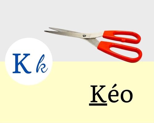 ອັກສອນຕົວນີ້ອ່ານວ່າ: K[ກາ] ຖ້າທຽບກັບຕົວອັກສອນໃນພາສາລາວແມ່ນຈະຄືກັບຕົວ ກ. ຢູ່ໃນນີ້ຈະອ່ານ ແລະອອກສຽງທັງໝົດວ່າ: K-Kéo[ກາ-ແກັວ]… Kéo[ແກັວ] ມີຄວາມໝາຍວ່າ: ”ມີດຕັດ”. ຕົວອັກສອນ K[ກາ] ນີ້ຈະເປັນພະຍັນຊະນະໄດ້ຢ່າງດຽວ.