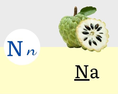 ອັກສອນຕົວນີ້ອ່ານວ່າ: N[ເນີ່] ຖ້າທຽບກັບຕົວອັກສອນໃນພາສາລາວແມ່ນຈະຄືກັບຕົວ ໜ, ນ. ຢູ່ໃນນີ້ຈະອ່ານ ແລະອອກສຽງທັງໝົດວ່າ: N-na[ເນີ່-ນາ]….. Na[ນາ] ມີຄວາມໝາຍວ່າ: ”ໝາກຂຽບ”. ຕົວອັກສອນ N[ເນີ່] ນີ້ເປັນໄດ້ທັງພະຍັນຊະນະ ແລະ ຕົວສະກົດໄດ້ຄືກັບຕົວ ນ ໃນພາສາລາວ.