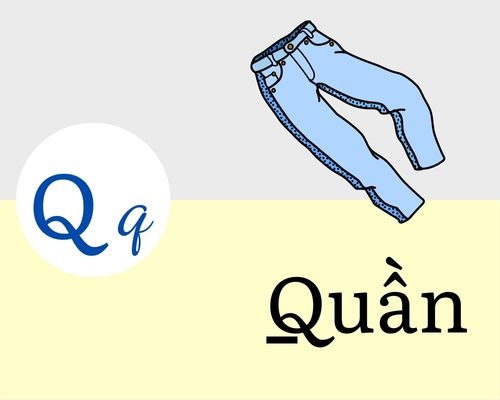 ອັກສອນຕົວນີ້ໃນພາສາຫວຽດ ເວລາມັນເປັນຕົວອັກສອນຈະອ່ານວ່າ: Q[ກູ] ຫຼື Q[ກູຍ]; ເວລາເປັນຕົວພະຍັນຊະນະຈະໄປກັບຕົວ u ສະເໝີຄື qu ອ່ານວ່າ [ເກວີ່]. Qu ຖ້າທຽບກັບຕົວອັກສອນໃນພາສາລາວແມ່ນຈະຄືກັບຕົວຄວບ ກວ. ຢູ່ໃນນີ້ຈະອ່ານ ແລະອອກສຽງທັງໝົດວ່າ: Qu-quần[ເກວີ່-ກວັ່ນ]…. Quần[ກວັ່ນ] ມີຄວາມໝາຍວ່າ: ”ໂສ້ງ”.