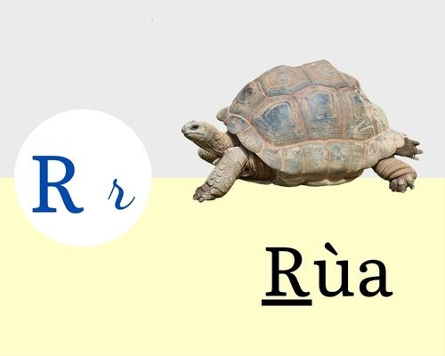 ອັກສອນຕົວນີ້ອ່ານວ່າ: R[ເຣີ່] ຖ້າທຽບກັບຕົວອັກສອນໃນພາສາລາວແມ່ນຈະຄືກັບຕົວ ຣ. ຢູ່ໃນນີ້ຈະອ່ານ ແລະອອກສຽງທັງໝົດວ່າ: R-rùa[ເຣີ່-ຣົ່ວ]… Rùa[ຣົ່ວ] ມີຄວາມໝາຍວ່າ: ”ເຕົ່າ (ໂຕເຕົ່າ)”. ຕົວອັກສອນ R[ເຣີ່] ນີ້ຈະເປັນພະຍັນຊະນະໄດ້ຢ່າງດຽວ.