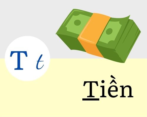 ອັກສອນຕົວນີ້ອ່ານວ່າ: T[ເຕີ່] ຖ້າທຽບກັບຕົວອັກສອນໃນພາສາລາວແມ່ນຈະຄືກັບຕົວ ຕ. ຢູ່ໃນນີ້ຈະອ່ານ ແລະອອກສຽງທັງໝົດວ່າ: T-tiền[ເຕີ່-ຕ່ຽນ]… Tiền[ຕ່ຽນ] ມີຄວາມໝາຍວ່າ: ”ເງິນ”. ຕົວອັກສອນ T[ເຕີ່] ນີ້ຈະມີຄວາມແຕກຕ່າງໜ້ອຍໜຶ່ງ ເພາະວ່າ: ເວລາເປັນພະຍັນຊະນະ ຈະຄືກັບຕົວ ຕ ໃນພາສາລາວ ແຕ່ ເວລາເປັນຕົວສະກົດຈະຄືກັບຕົວສະກົດ ດ ໃນພາສາລາວ.