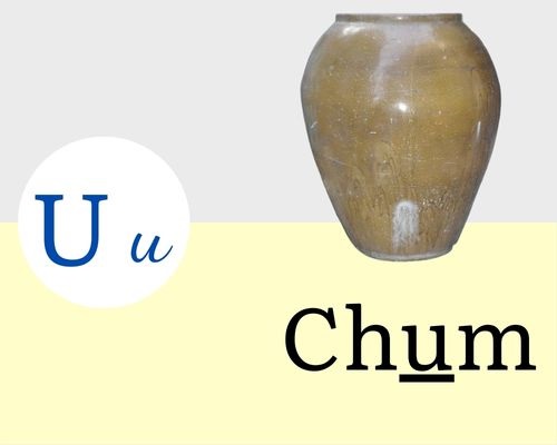 ອັກສອນຕົວນີ້ອ່ານວ່າ: U[ອູ] ເປັນສະຫຼະ ×ູ ໃນພາສາຫວຽດ, ຖ້າທຽບໃສ່ພາສາລາວແມ່ນສຽງຫຼະສະ ×ູ. ຢູ່ໃນນີ້ຈະອ່ານ ແລະອອກສຽງທັງໝົດວ່າ: U-chum[ອູ-ຈຸມ]. Chum[ຈູມ]. ມີຄວາມໝາຍວ່າ ”ໄຫ”. ສະຫຼະ U[ອູ] ນີ້ເວລາເອົາໄປປະກອບກັບພະຍັນຊະນະ ຈະໃສ່ຕົວສະກົດ ຫຼື ບໍ່ໃສ່ ກໍ່ໄດ້ຂື້ນກັບຄຳສັບນັ້ນໆ. ຕົວຢ່າງ: ngu [ງູ], cúng [ກູງ],…