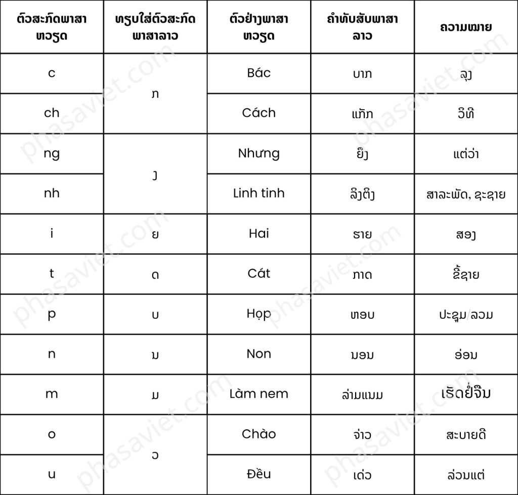 2 | ă | ອາ (ສຽງສູງ) | ×ັ | ăn : ອັນ | ກິນ |